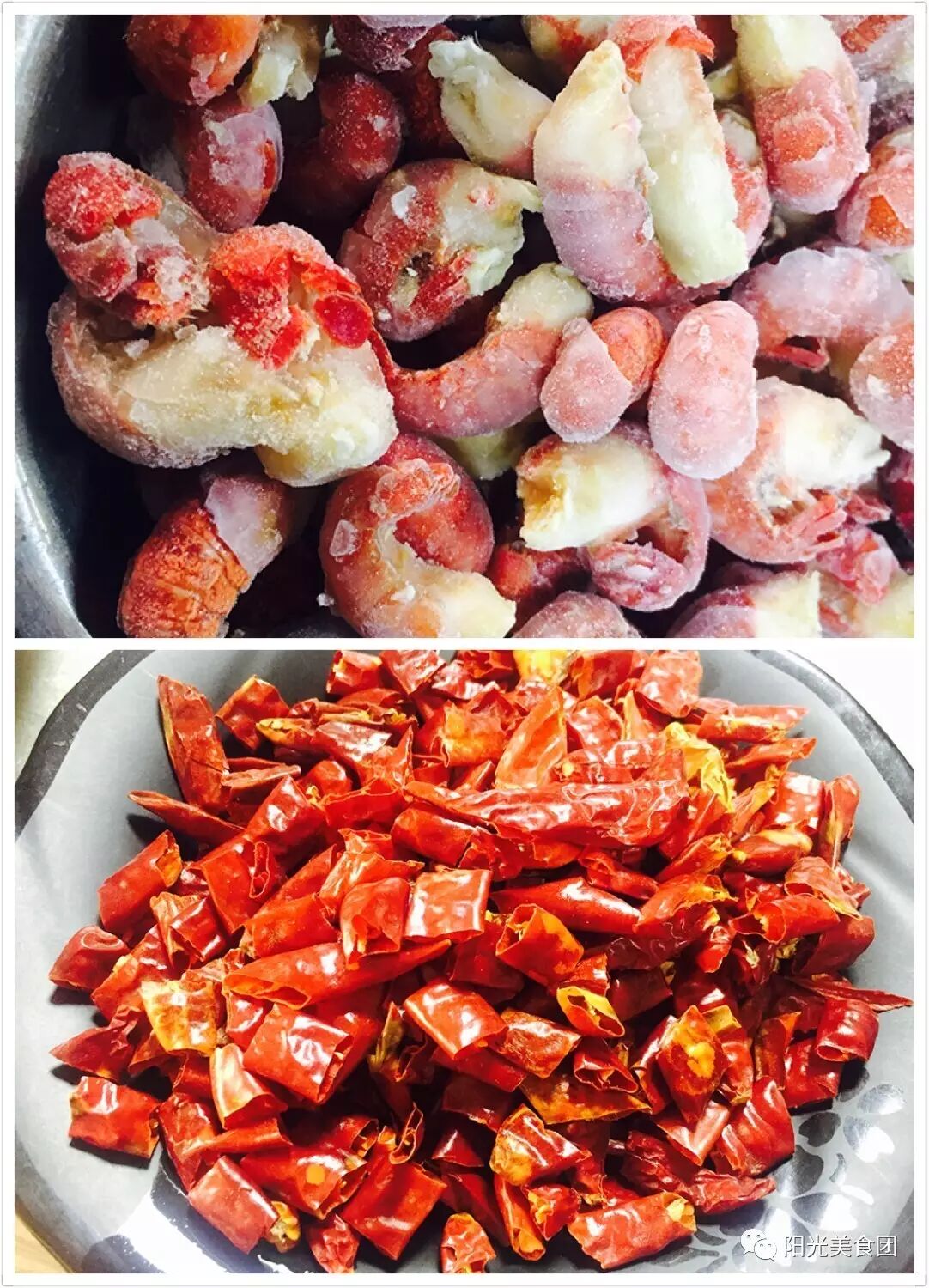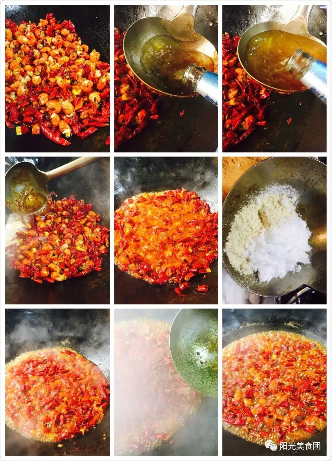 虾尾500克|干辣椒300克|葱|蒜子|麻椒|麻油|辣椒酱