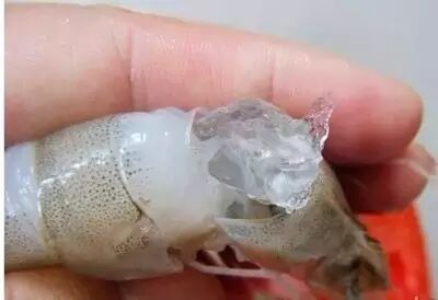 分辨虾是否被添加了明胶或其他添加物,其实并不困难。一般来说,虾头被注胶后都会鼓胀得很厉害;虾身注胶后,用手按压虾身很容易反弹,并且虾头跟虾身的接合处很容易就能用手剥离。