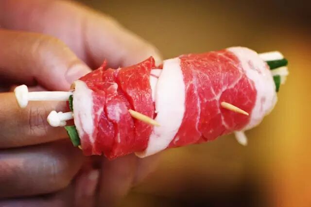 这样切的纤薄的牛肉串吃起来方便