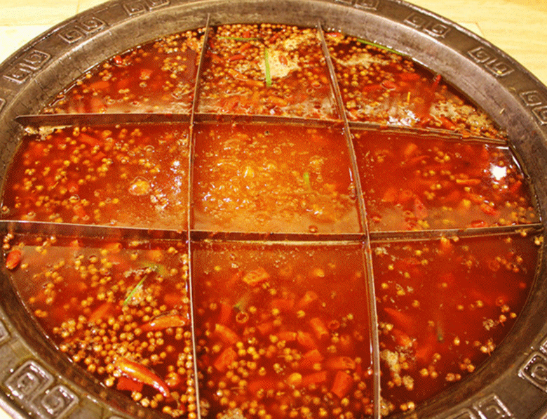 整锅红汤和辣椒花椒欢腾起来