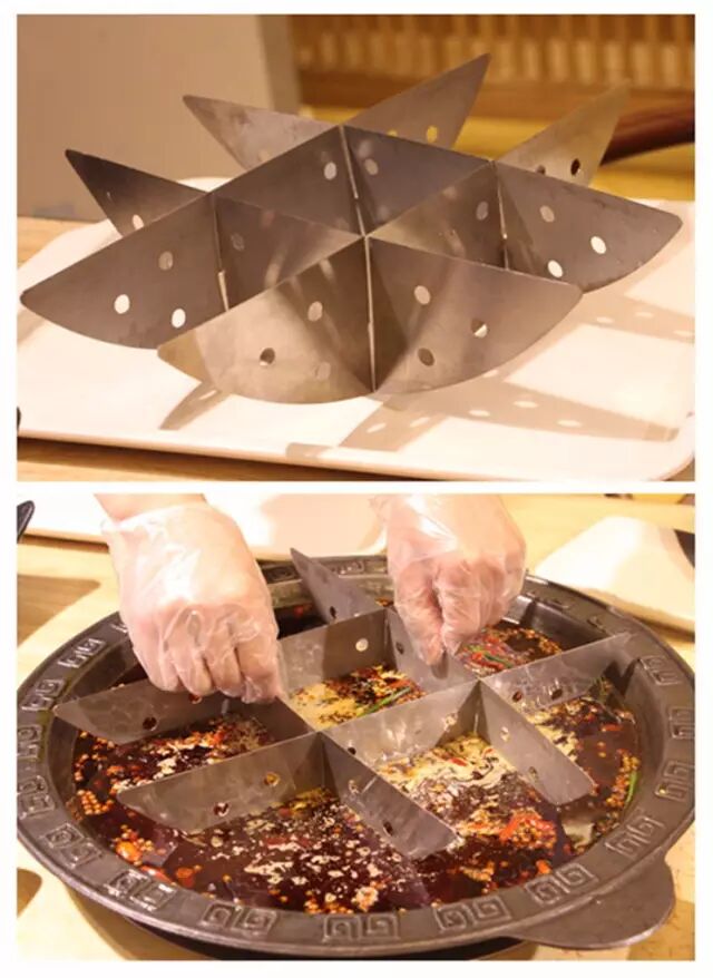 待大火将红油化开后再放入九宫格