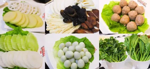 吃火锅当然要荤素搭配啦,再来点牛肉丸、菌类拼盘、鹌鹑蛋、土豆、莲藕,这些东西通通下肚,还不饱的话……你就再吃点