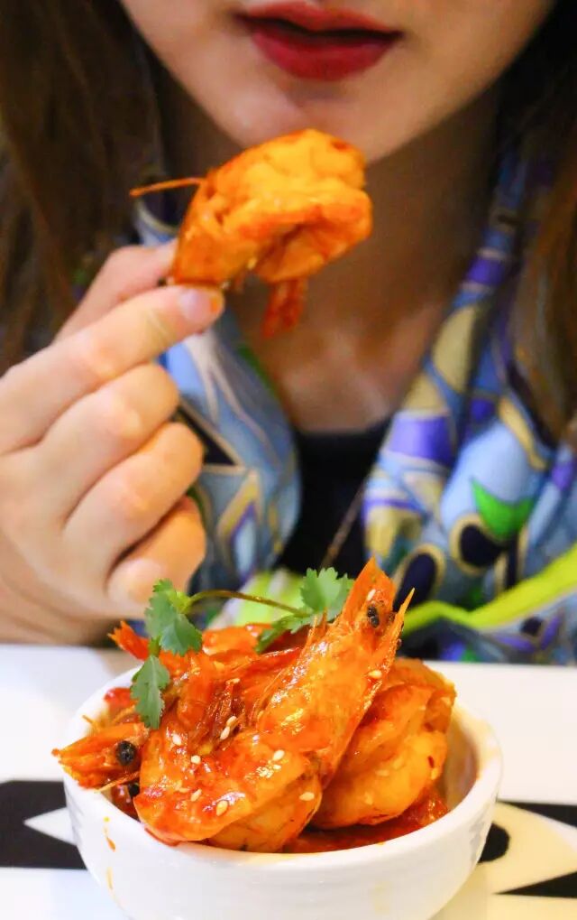 把虾剥的光溜溜,除去虾头整只放进嘴巴里,慢慢享受爆汁的快感,虾肉鲜嫩入味,吃完忍不住还要吮吮指头