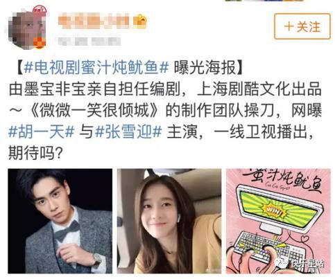 网爆《蜜汁炖鱿鱼》将由胡一天张雪迎,由墨宝非宝亲自担任编剧,期待么?这部小说在网上的知名度很高,很多网友表示拍摄该剧的话,一定要找合适的演员,当确定了胡一天之后,网友表示希望不要毁了原著,觉得胡一天的风格不太搭,你们觉得呢?