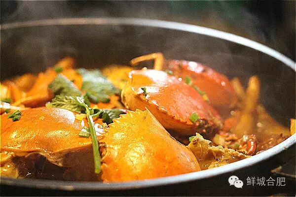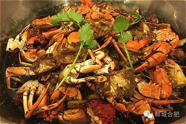 “七尖八团,七月里吃尖脐(雄),八月里吃团脐(雌)。“大抵曹雪芹先生也是一个爱蟹之人,里面关于吃蟹的描写颇为具体。用剪刀将螃蟹的8只脚和2个蟹钳剪下来。放凉后肉与蟹壳分开,很容易被顶出或吸出,所以要留到最后吃。往蟹壳里淋一些姜醋汁,把蟹黄吃掉。记住哦,蟹嘴的下方有一个三角锥形的部位,那个是蟹胃,不能食用。在蟹身中间有一个呈六角形的片状物,那是蟹心,大寒,不能食用。用剪刀将多余的蟹嘴和蟹肺(蟹身两边呈眉毛状的部位)剪掉。用小勺舀点姜醋淋在蟹身上,然后把蟹身的蟹黄蟹膏吃干净,再将蟹身掰成两半。用蟹脚尖粗的那一头把蟹腿前段的肉顶出来。至于蟹钳,用剪子将两边剪开,再向相反的方向掰两只钳脚就可以将蟹钳分开。相信你们也有不少对着生龙活虎的螃蟹抓耳挠腮不知道该怎么煮的朋友。蒸锅中放入适量热水,大火烧开后将大闸蟹肚子朝上放入蒸锅中,盖上锅盖蒸15分钟左右。将生抽、香醋、香油、葱姜蒜末放入碗中,混合均匀成蘸料备用螃蟹、 葱 、 姜 、蒜 、芫荽、 豆瓣酱、老干妈、 酱油、 白糖、 料酒    将螃蟹洗净,去掉尾部,打开蟹盖,将腮摘除。将蟹盖大火蒸8分钟,或至蟹黄、蟹膏熟透即可。将每只螃蟹剁成四块,入油锅炸2-3分钟,此时表面的蟹黄、蟹膏已凝固,蟹肉基本熟了,捞出。大蒜拍碎,葱姜切末。锅内留底油,中小火爆香葱姜蒜,下豆瓣酱和老干妈,慢炒至出红油。下白糖炒匀,开大火,锅热后下螃蟹爆炒,亨入料酒和适量酱油(豆瓣酱本身是咸的,所以先试试咸淡,再决定加不加酱油),炒匀。盖上盖子焖1、2分钟。加入芫荽,翻炒均匀,装盘。开吃!别忘了蒸好的蟹盖。加点醋吧:)用刷子把蟹刷干净,用队筷子把蟹盖和蟹身分开,把内脏和腮清干净,蟹身剁半。葱切葱花。大米煮半小时至开花后,放入螃蟹、虾、干贝,放姜丝,大火煮10分钟老合肥应该都知道桐城路上的“螃蟹村香辣蟹”,作为茉莉旗下并且已经开了有16年之久的合肥老牌餐厅,它的口碑一直非常好。店里最招牌的当然是主打香辣口味的香辣蟹了。每天从缅甸空运而来的青蟹,确保了食材的新鲜。青蟹个头虽不是那么大,但是肉肉很足。干锅用黄瓜垫底,另外像是土豆、海带、年糕、豆腐皮、平菇、蟹柳、鹌鹑蛋、午餐肉……这些几乎都是到店顾客的必点菜。平日里螃蟹的吃法多以清蒸为主,第一次听到烤螃蟹也是醉了。特色烤螃蟹目前在合肥算是首家,除了烤螃蟹,特色黄金蟹粥更受吃货的青睐,值得一试。