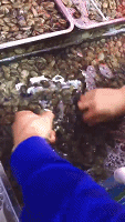 她们买的虾还在活蹦乱跳,花螺花甲也还在透水
