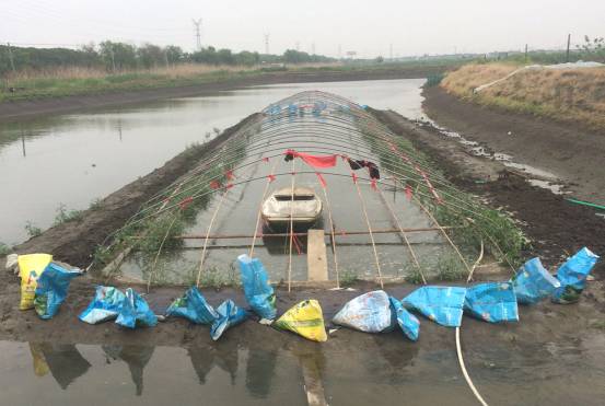 模仿罗氏沼虾的塘中小棚标粗