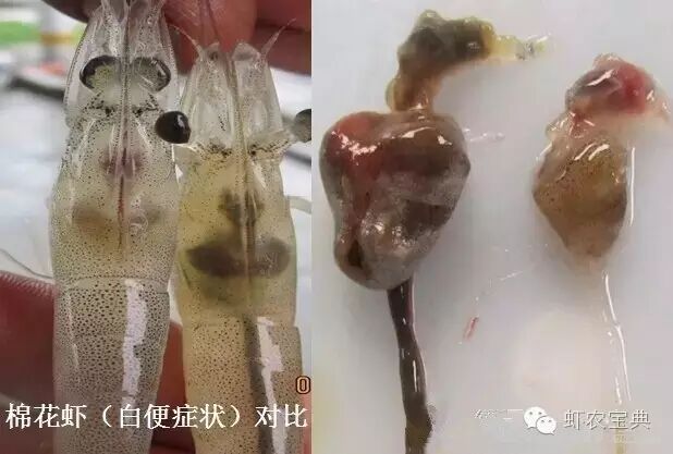 粪便呈现白色、黄白色或黄黑白三色,极有可能是白便发生的预兆。一般对虾粪便出现异色,可能是因为底恶变,也可能是底有死虾,要不就是虾开始发生病变。