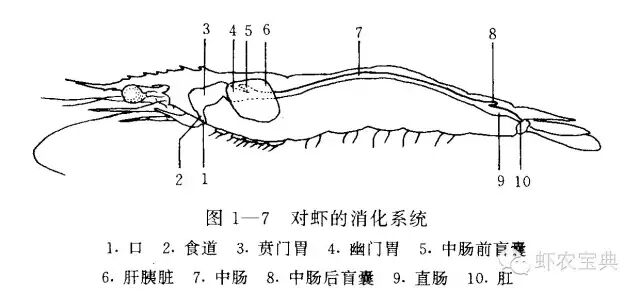 虾蟹类的消化系统由消化道及消化腺组成。消化道包括口、食道、胃、肠以及肛门组成。