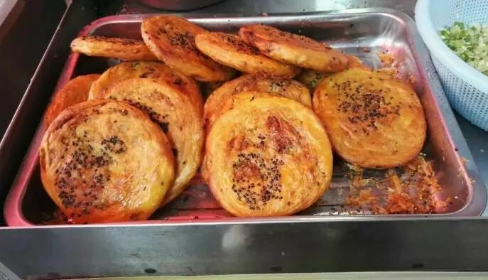 在成都,有肥肠粉的地方,就一定有锅盔。这家店在门口迎接客人的,就是一锅子新鲜出炉的军屯锅盔,这馋人的香味让你不得不驻足停留,买上一个。