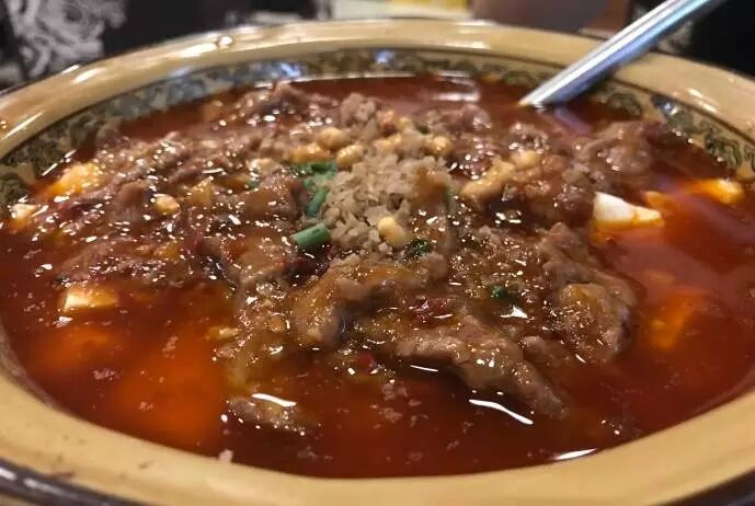 地道的川菜馆,著名的招牌菜麻婆豆腐,豆腐雪白绵软,下锅不烂,用料考究,花椒面后劲很够,豆瓣酱也很赞,牛肉又鲜又嫩,豆腐可口异常。