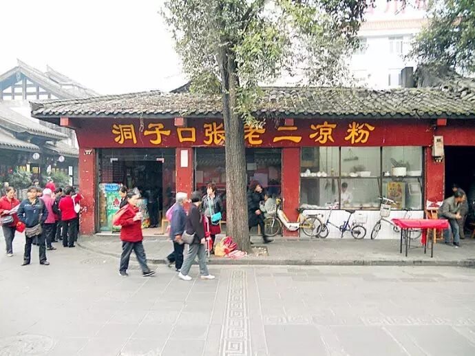 作为小吃老字号的扛把子,靠着这个文殊院街上翻修了近四五次的小店,洞子口张老二在这里开了90多年了,它应该是成都最出名的凉粉之一了,不仅是无数外地游客来成都的必打卡地,也是成都本地居民喜爱的凉粉店。