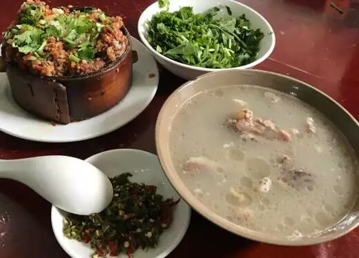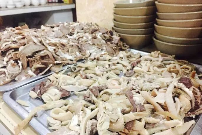 秦川号作为1912年开业的百年老店,很是低调。据说百年前,秦家富甲一方,拥有百亩羊肉屠宰场,于是开了一家羊肉汤馆,很快火遍了全成都。他家的羊肉不加胡椒、葱、蒜、姜等提味的调料,跟风靡的简阳羊肉不同,秦川号不炒羊肉,只用一口大锅就能熬出鲜美的羊汤。