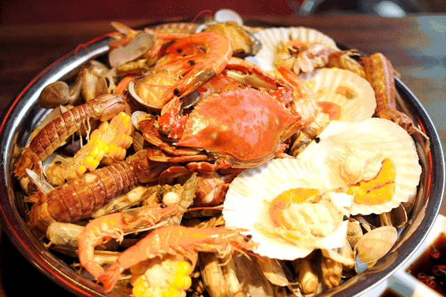 海鲜锅满得都要溢出来!店内海鲜食材都是每天早上亲自挑选回来的,这简直业界良心!鲍鱼、梭子蟹、皮皮虾、扇贝、蛏子、基围虾、花蛤!一锅汇集的海鲜的精华,吃到嘴里,保证让你的眉毛都能鲜的都要掉下来!
