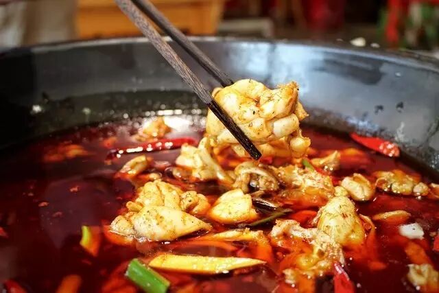 入口就是锅底的麻辣同蛙肉的香嫩在相互纠缠,蛙肉极鲜极嫩,渗入锅底的麻辣,简直是好吃到爆!