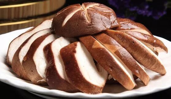3.香菇洗净剪去根部后,切成薄片加入粥内