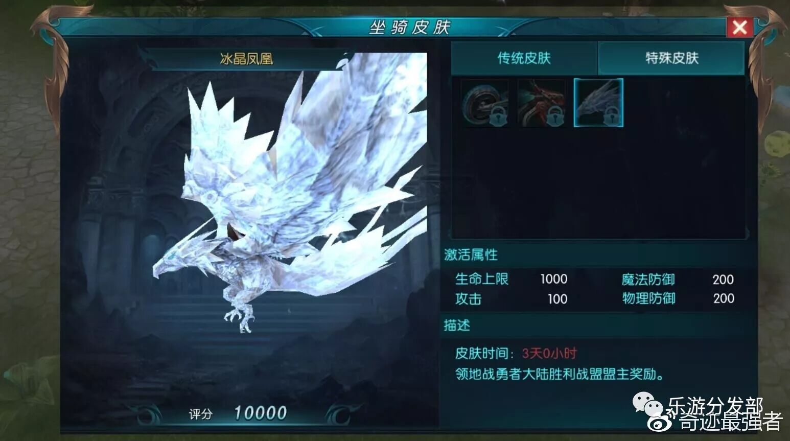 2、领地战新增内城(勇者大陆)城主限时金色皮肤奖励:冰晶凤凰(很珍贵哦!)