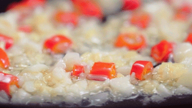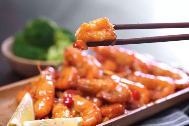 3、热油锅,放入姜蒜末、辣椒段炒香后放入虾翻炒。