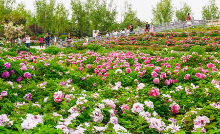 公园拥有380多亩牡丹、芍药花海,有约九大色系近300个品种20万株牡丹。