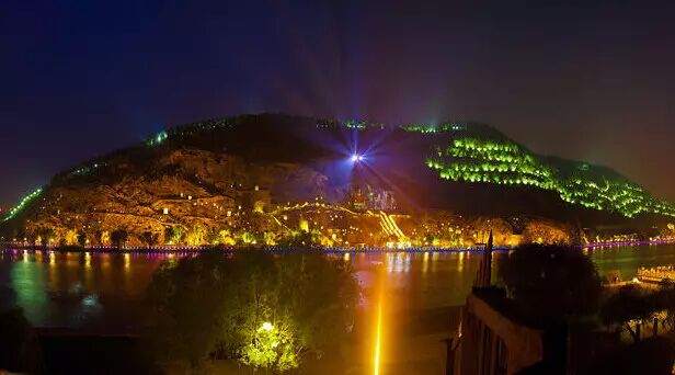 龙门石窟不仅仅是白天游览,晚上的风景也十分值得一看,当现代的霓虹碰撞上恢宏的石窟建筑群,大饱眼福,震撼人心。