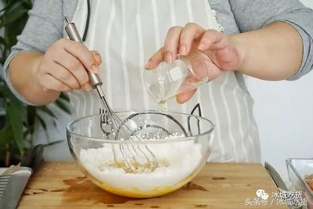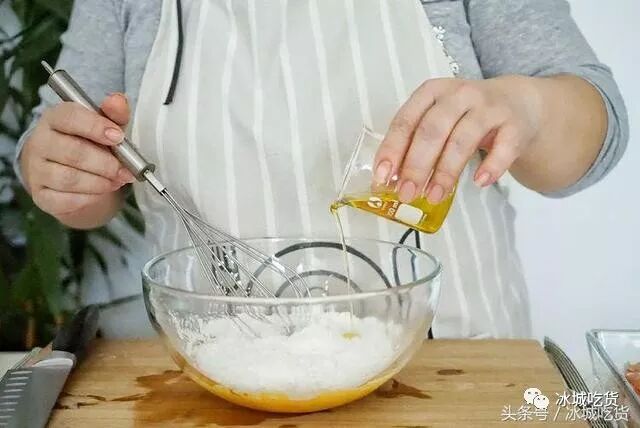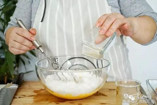 搅拌成提起打蛋器,蛋液会一直流淌下来。