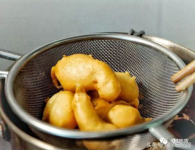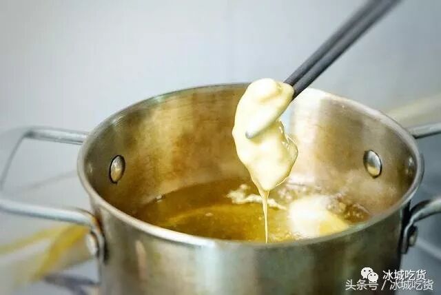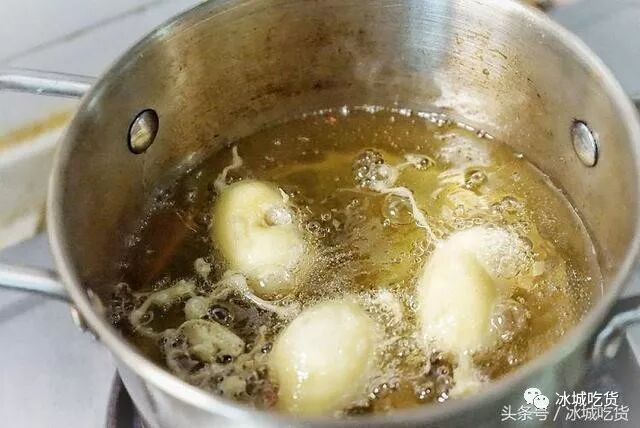 油温160度左右,没有温度计可以先将火开到最大,油烧开关成中火,滴一滴面糊到锅里能迅速成型能飘起来,并且不会上色,说明油温刚刚好。
