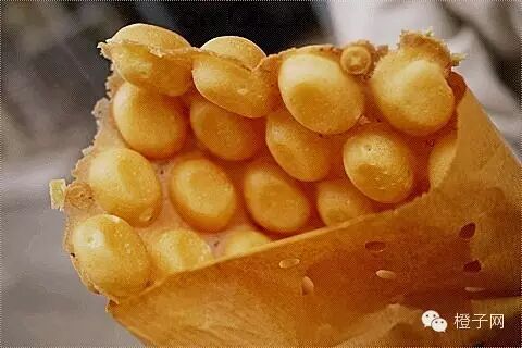鸡蛋仔都是现场制作,将原液灌入像蜂窝一样的容器中,经过三分钟的等待,打开容器,一张香喷喷的鸡蛋仔就闪亮登场了。鸡蛋仔现烤出来的外皮酥脆,内里绵软,吃了还想要!