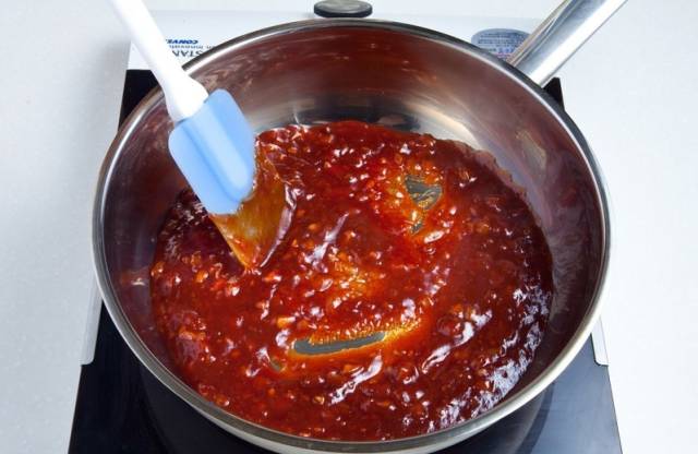 ② 热锅,入油,下蒜泥、洋葱泥,不断翻拌;随后将剩余调味汁材料下锅,翻拌1-2分钟至调味汁煮开;