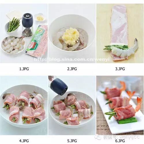 原料:大虾10只 培根10片 芦笋尖20个 蒜蓉1汤匙(15ml) 芝士片2片
