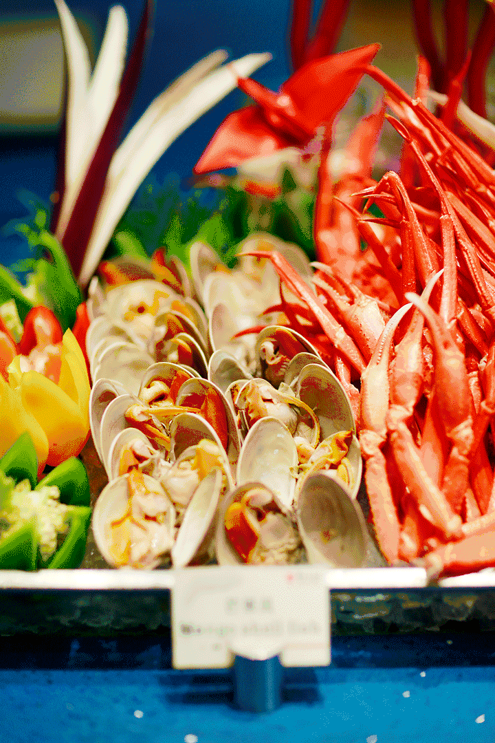 一进门的海鲜区域特别亮眼!阿拉斯加雪蟹脚、北极贝、阿根廷红虾……全都不限量!!!