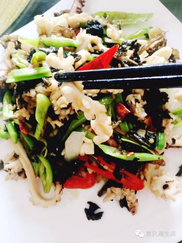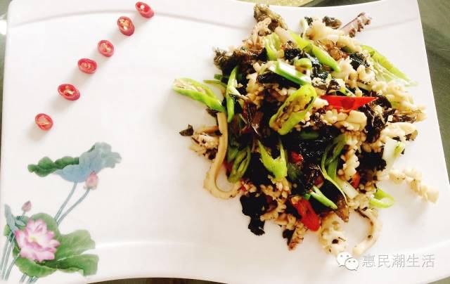 在嘴里一直嚼啊嚼,嘎嘣嘎嘣脆,很香,越嚼越觉得好吃呢,再加上红绿辣椒的搭配,辣味适中,很有鲁菜的特点,这道菜是美食君今天品尝的菜里最合胃口的一道呢,你们也可以去尝尝呀!