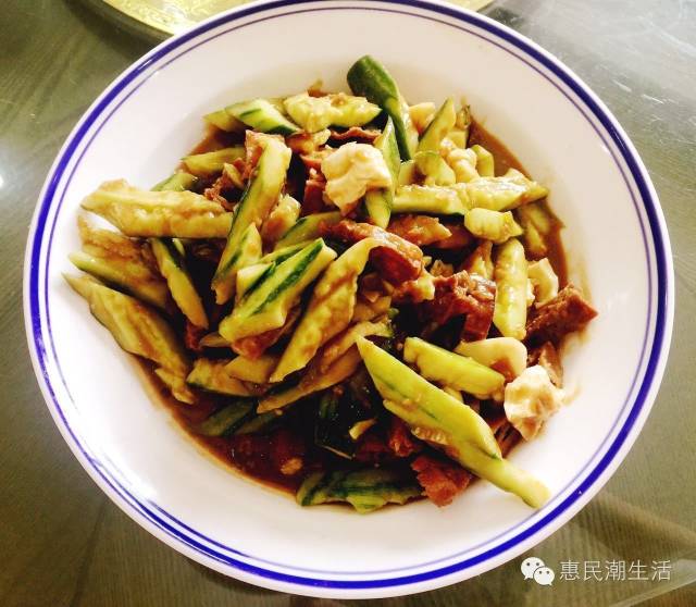 脆脆的油条,黄瓜条,鸡蛋和各种佐料搭配一起,一道很家常的凉菜啦,这家店的油条口感不错哦,听说是他们自己炸的呢。但是美食君觉得这个将军菜的酱口味过重,有点掩盖了这道菜原有的清爽,这只是美食君的个人口味啦,可能重口的朋友会很喜欢吧。