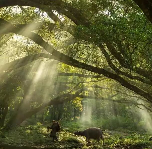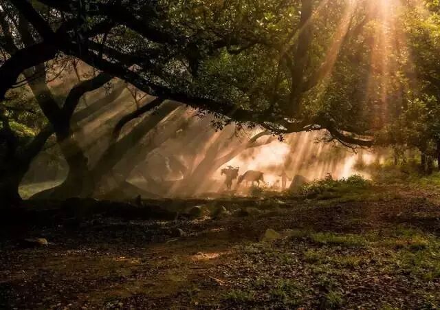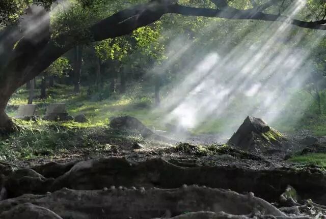 每当早晨的阳光斜斜地洒进树林,斑驳的树影在光影的晃动下展示着它的魔法,营造了一种如梦似幻的感觉。
