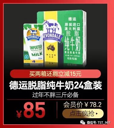 【直降30元】德亚澳洲脱脂牛奶250ml/盒*24