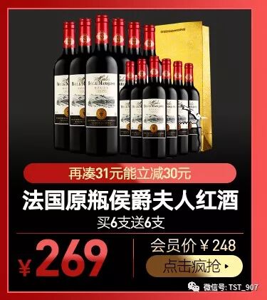 【买6支送6支】法国原瓶进口葡萄酒梦诺侯爵夫人干红