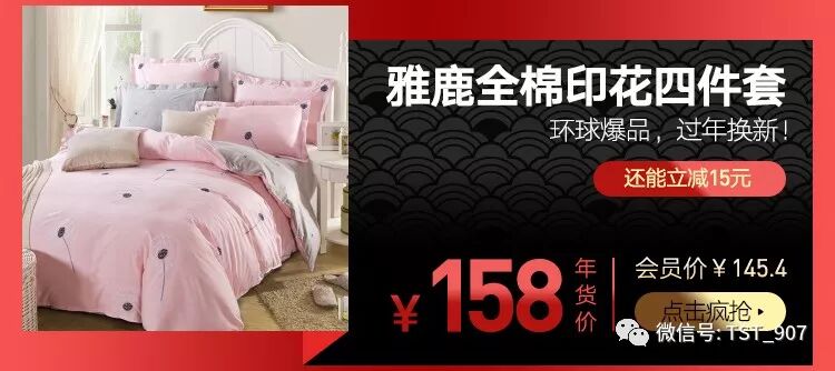 雅鹿家纺 全棉印花四件套标准尺寸1.5/1.8米
