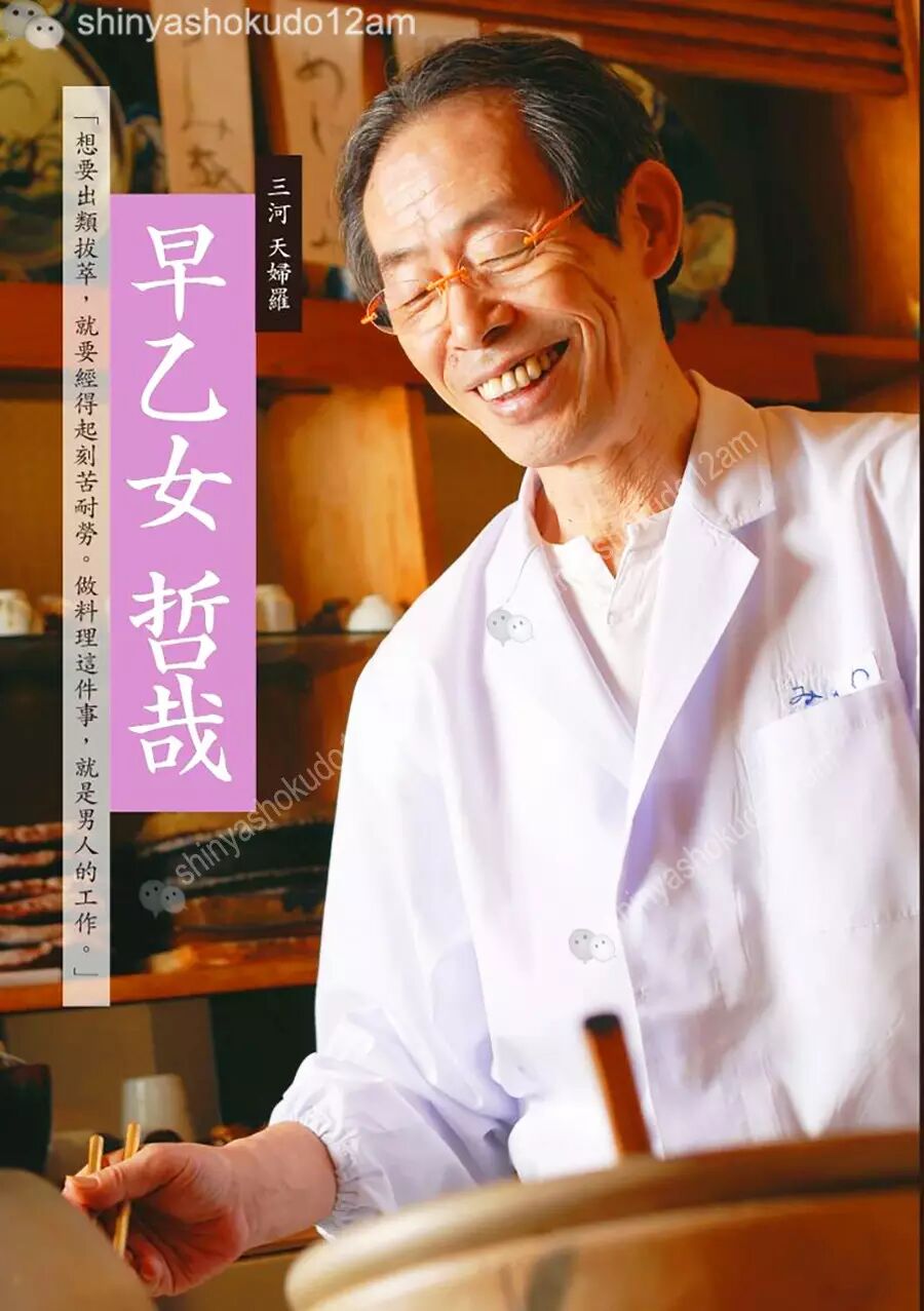 今天Master要介绍的这位大师,连小野二郎都会定期光顾他的店。他和「寿司之神」小野二郎及「鳗鱼之神」金本兼次郎,是江户前料理的三大神级代表。他就是「天妇罗之神」早乙女哲哉。