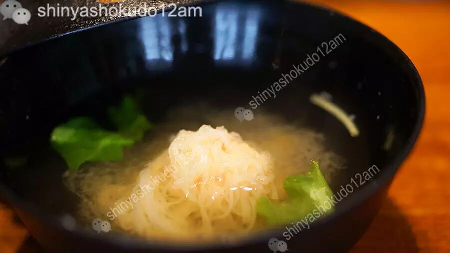 手工虾丸小小一颗非常软嫩,而且汤中还有放入小片的柚子来提味,顺便也可以消消油腻的口感。