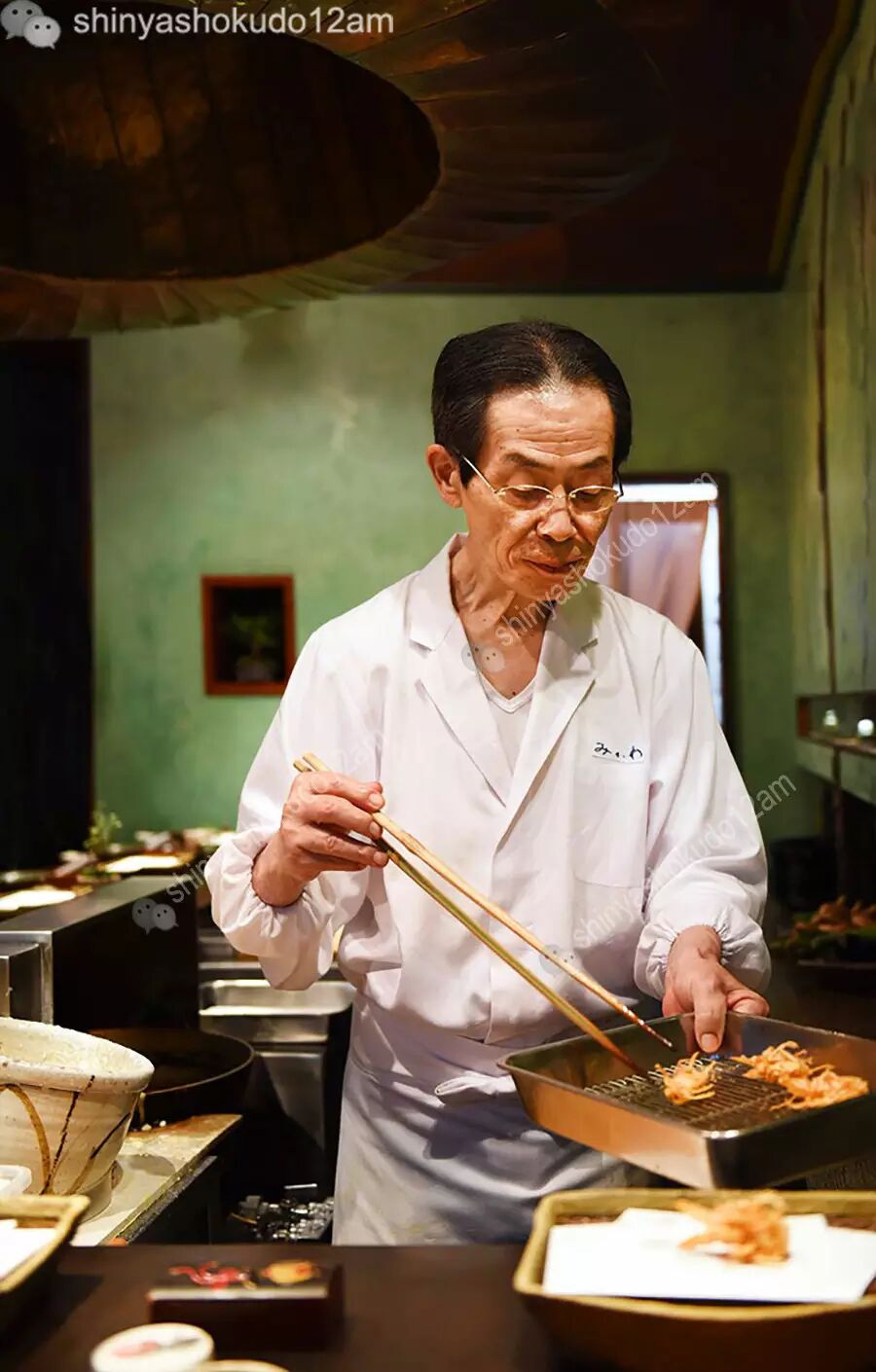 位于东京门前仲钉的「みかわ是山居」,主厨早乙女哲哉15岁开始炸天妇罗,已经近70岁,在过去半个世纪炸出3000万道天妇罗,被称为「天妇罗之神」。