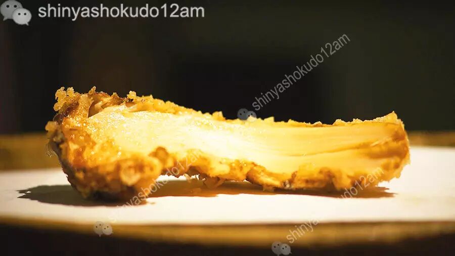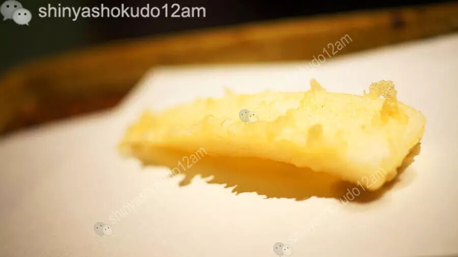 鱚鱼水份多,味道淡泊,要透过低温长时间油炸以求脱水,鱼的鲜甜才会被浓缩于这片肉质细腻,纹理分明的鱼肉之间。虽然看似很油腻,但入口清新之余鱼肉鲜嫩软滑。