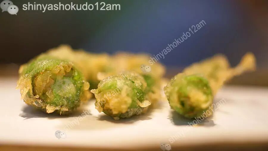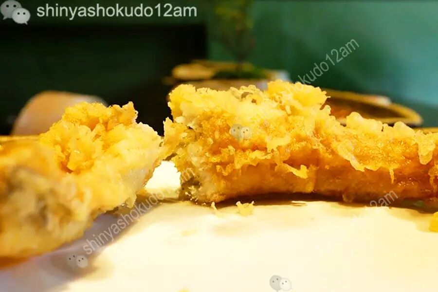 高级天妇罗理应用时令新鲜食材,薄薄蘸上精心调制的炸浆,以最适当的油温以刚好的时间炸完,目的是去除食材表面水份之时内部保持原味和口感,表面的炸浆应该非常薄而有酥脆的口感。