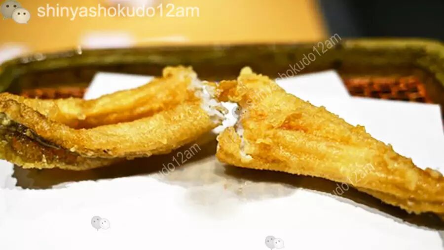 从油锅中捞上来,早乙女师傅用长长的铁筷当成刀刃,把炸好的星鳗夹到吸油纸上,仿若使剑的高手,“嚓”,一筷子将它分成两半。动作之流利,还没看清招式,剑已回到鞘中,星鳗细嫩的白肉露出,香气扑鼻。