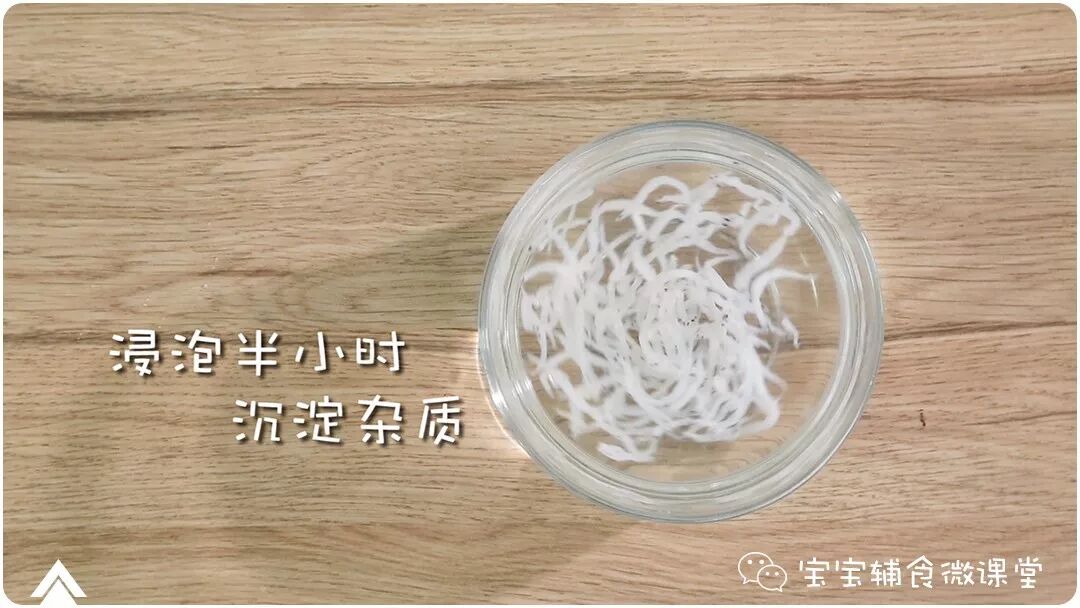 把银鱼放入清水中洗个澡,搅散后浸泡半小时泡出多余的脏东西。