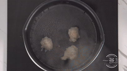 4.用勺子挖出虾茸,放入沸水锅煮到变色捞出