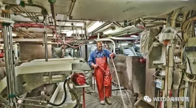 每批北极虾加工技术后,工人都要用海水将设备彻底的冲洗干净,不留任何死角。这些船上加工设备,都是按照最严格的卫生标准管理的。