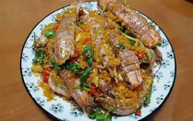 先炸蒜蓉辣椒圈,再倒面包糠翻炒