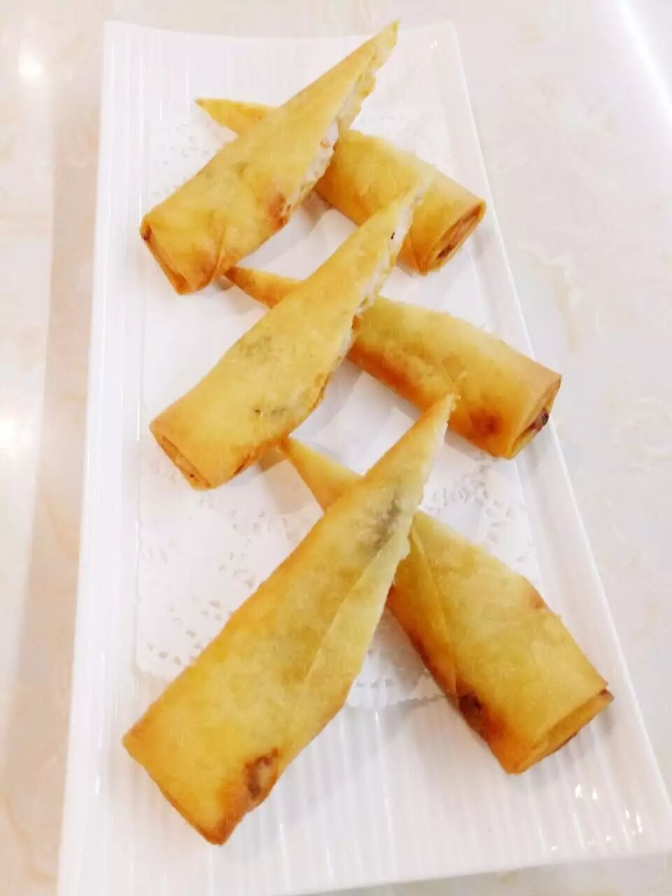 金黄色的春卷里包着虾仁,小编这等虾仁控看到就兴奋了。咬一口,春卷皮脆得掉渣,事先淋干了油所以不会有油腻感,配上两口普洱吃,完美!