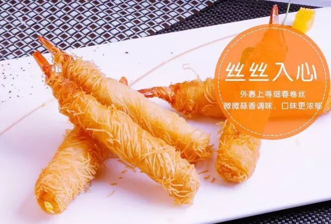 看名字大家就知道这里面包裹的的是什么啦!一个个饱满的虾仁被金丝缠绕,一口咬下去,外酥里嫩,回味无穷!