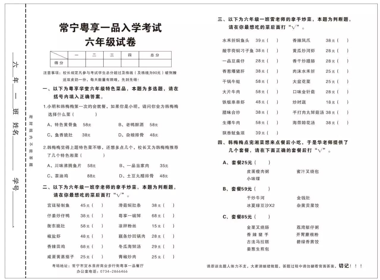 机会是留给有准备的人滴,小编偷偷附上答案,点完找老板领奖品去吧~店内还有包厢可以承办各类宴席、升学宴可享受8折, 重要的事情说三遍!!!