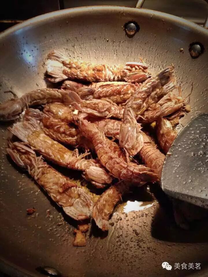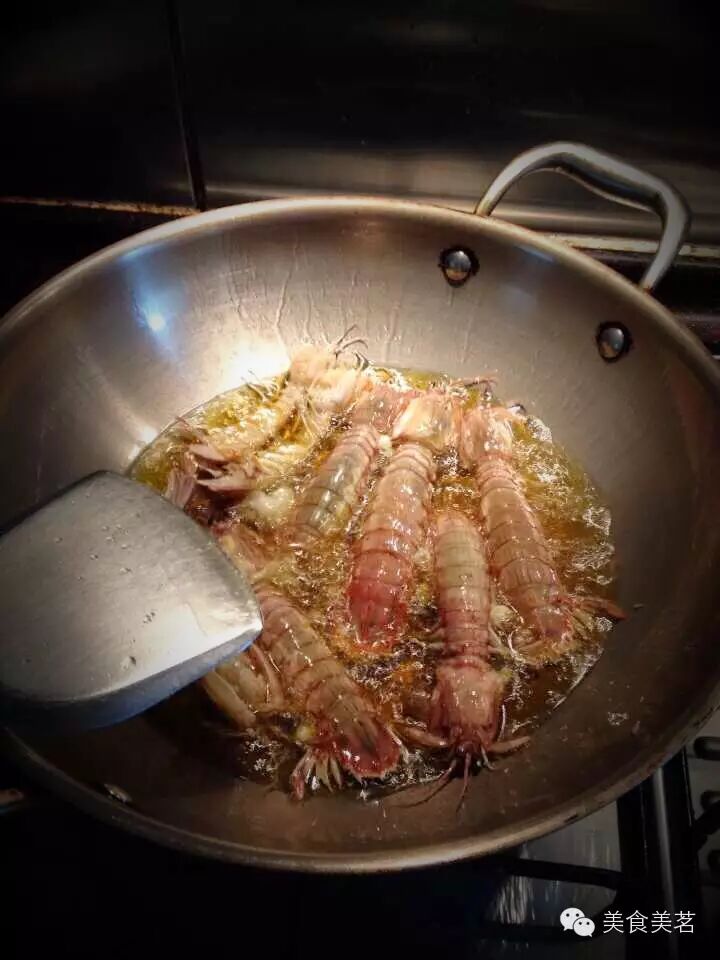 3、皮皮虾用厨房用纸巾吸干水份,然后入油锅炸,炸至表皮酥脆,捞起。